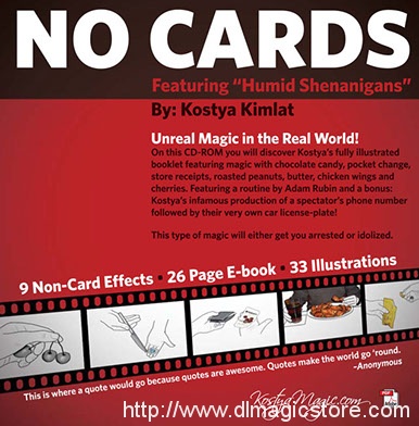 Humid Shenanigans is Unreal Magic in the Real World! Discover Kostya's fully illustrated booklet featuring magic with chocolate candy, pocket change, store receipts, peanuts, chicken wings and cherries. Featuring a routine by Adam Rubin and a bonus: Kostya's infamous production of a spectator's phone number followed by their very own car license plate! This type of magic will either get you arrested or idolized.