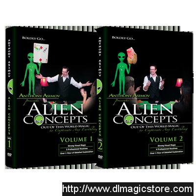 Anthony Asimov's ALIEN CONCEPTS DVD series spotlights 9 out-of-this-world routines designed to captivate any earthling. Featuring Asimov's full 45-minute live show, over two hours of explanation, and the secrets behind his most closely guarded effects including "The Skulls of Anarchy" (a matrix-style effect using tiny stone skulls and Tarot Cards), "The Alien Thread" (Asimov's innovative colorful twist on the classic "Gypsy Thread" illusion) and "This Is Nuts" (a powerhouse showstopper), you will learn strong visual magic from an innovative magician that will boldly take your audiences to new places. Bonus materials include three visual performance-only routines that Asimov regularly performs in his close-up show. Asimov's magic has been seen at hundreds of college campus performances, Off-Broadway, on TV, and he is a member of the world famous Magic Castle in Hollywood.