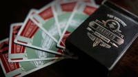 A spectator signs a card and returns it to the deck. The magician reaches into his pocket and INSTANTLY removes a crystal clear block that contains the signed card.